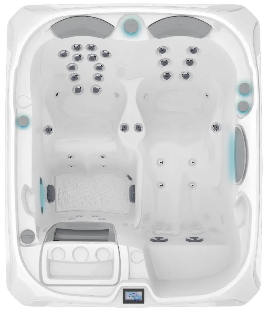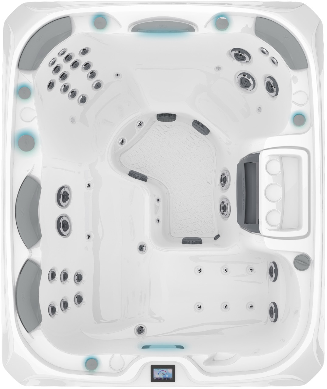 Posiada 5 pełnoprawnych siedzisk z hydromasażem oraz dodatkowe miejsce przy wejściu z intensywnym masażem stóp, dzięki czemu komfortowo korzysta z niego nawet 6 osób.