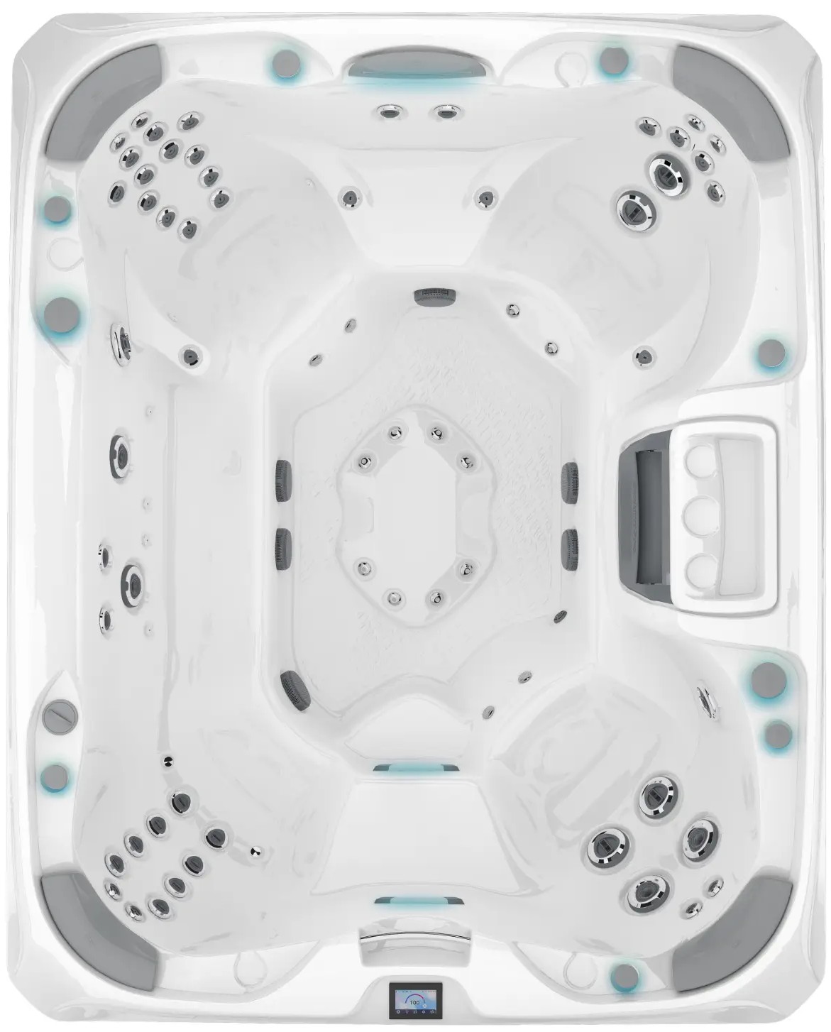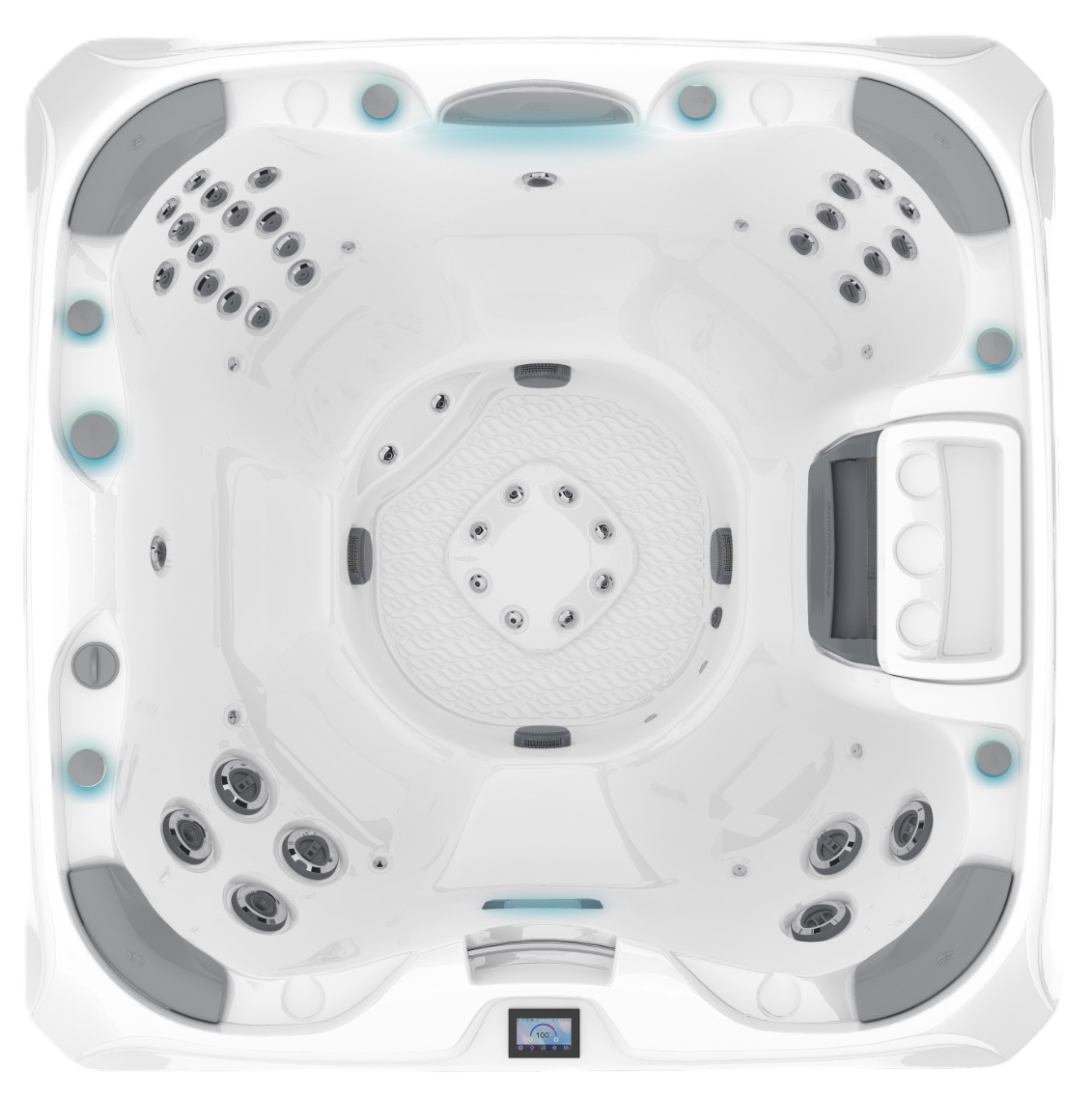 Pełnoprawne 6-osobowe jacuzzi bez leżanki, o tych samych wymiarach co bestseller z leżanką (226×226 cm), ale z innym układem siedzisk i hydromasażu.